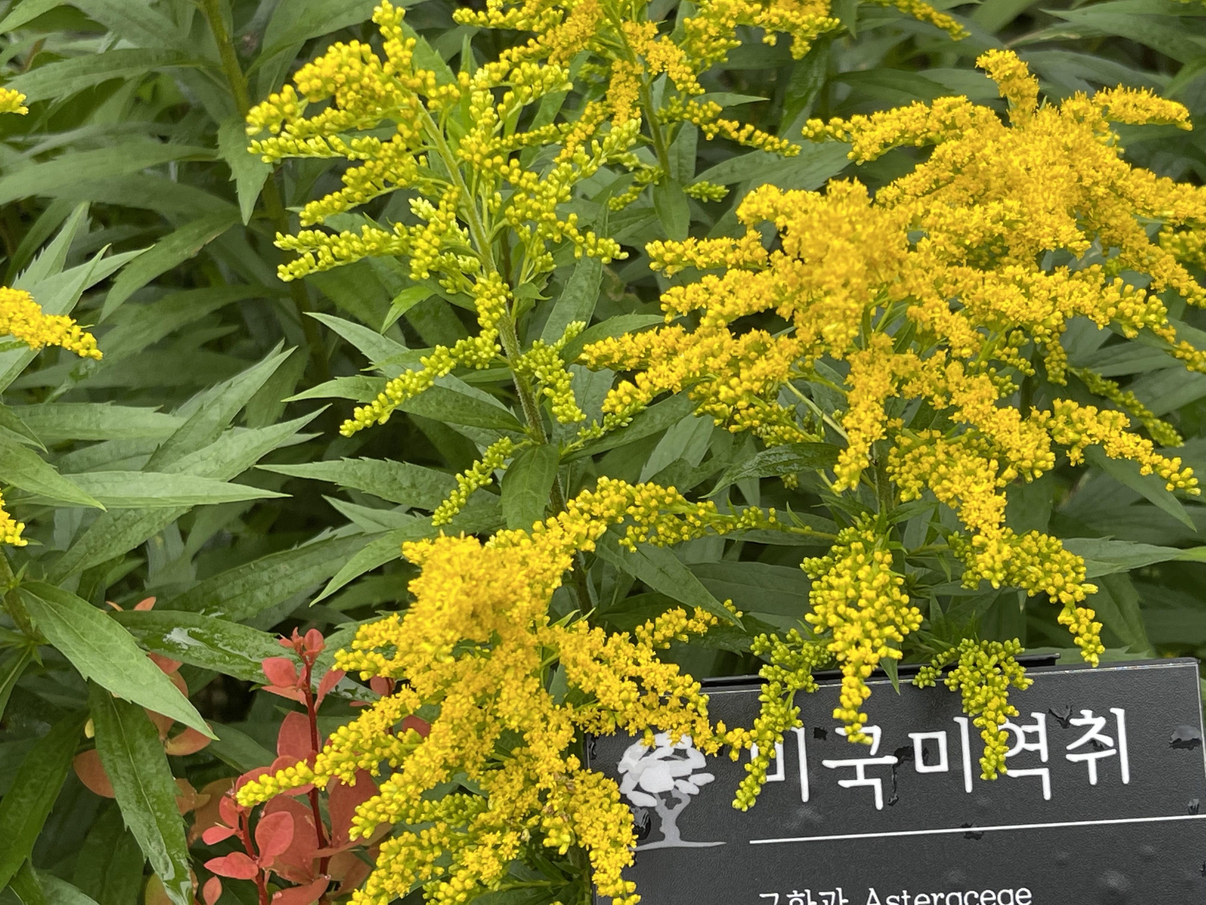미국미역취는 국화과의 여러해살이풀입니다. 북아메리카가 원산지이며 관상용으로 심습니다. 줄기는 윗부분에서 가지가 갈라지고 높이가 1m이다.