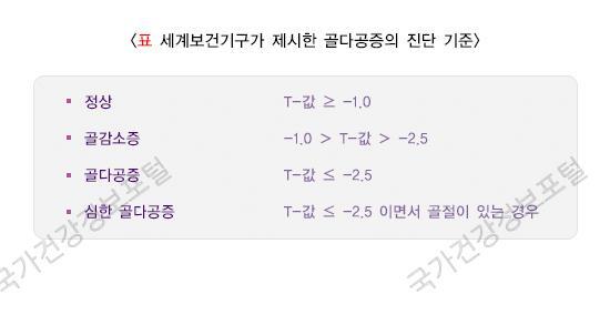 세계보건기구가 제시한 골다공증의 진단 기준은 다음과 같습니다.