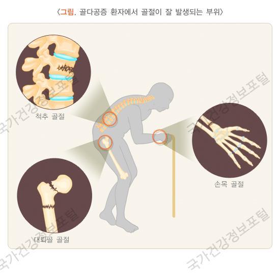 골다공증 및 합병증 예방을 위하여 식이, 운동, 낙상 방지, 생활양식의 변화 등, 다양한 접근법이 필요합니다.