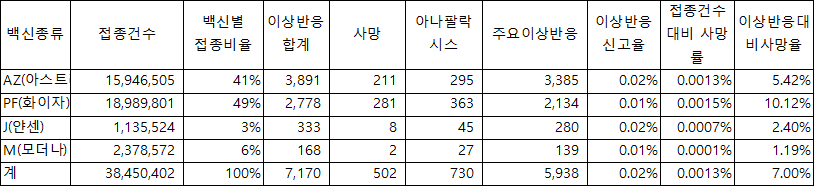 2021.08.25 - [건강] - 코로나19 백신 접종 후 백신별 사망율 분석('21/08/25)