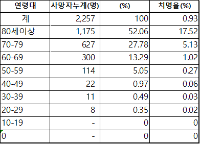 오늘 발표된 질병관리청의 자료를 근거로 백신접종 후 연령대별 사망자 현황 및 치명율을 알아보려 합니다.