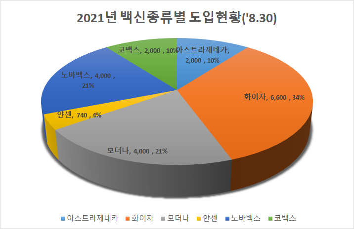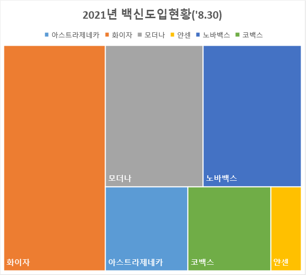 화이자가 제일 많이 도입되었습니다. 얀센 도입분은 얼마 되지 않는군요.