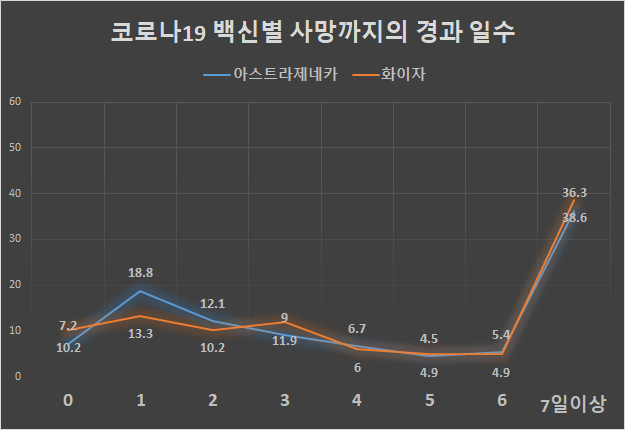 코로나19 백신별 사망까지의 경과일수('21.9.2)를 분석해 보았습니다.
