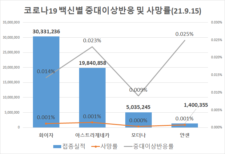오늘은 코로나19 백신별 중대이상반응 및 사망률(21.9.18)에 대하여 알아보고자 합니다.