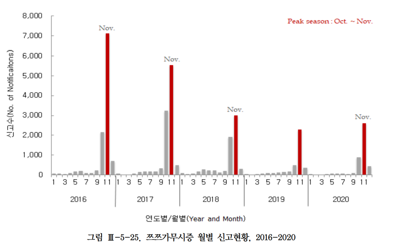 주로 성묘와 벌초, 나들이 등이 많아지는 가을인 10월과 11월,12월에 잘 걸립니다. 특히 11월은 제일 많다고 하겠습니다.