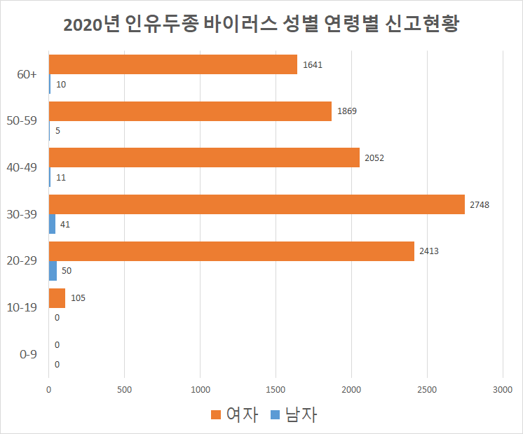 아래 질병관리청이 발표한 2020 감염병 감시자료 에 따르면 2020년도에 총 10,945명의 감염이 신고되었고 그중의 99%가 여성이 신고한 것입니다.