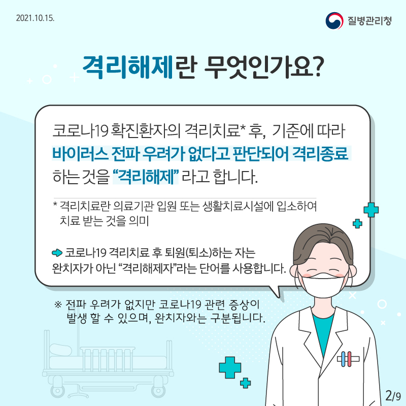 오늘은 코로나19 확진 후 격리해제에 대한 궁금증을 알아보도록 하겠습니다.