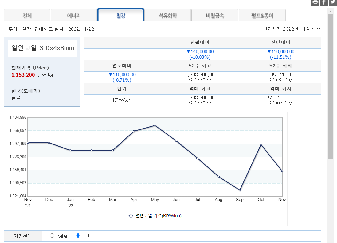 오늘은 2022년 철강가격동향을 살펴보도록 하겠습니다.