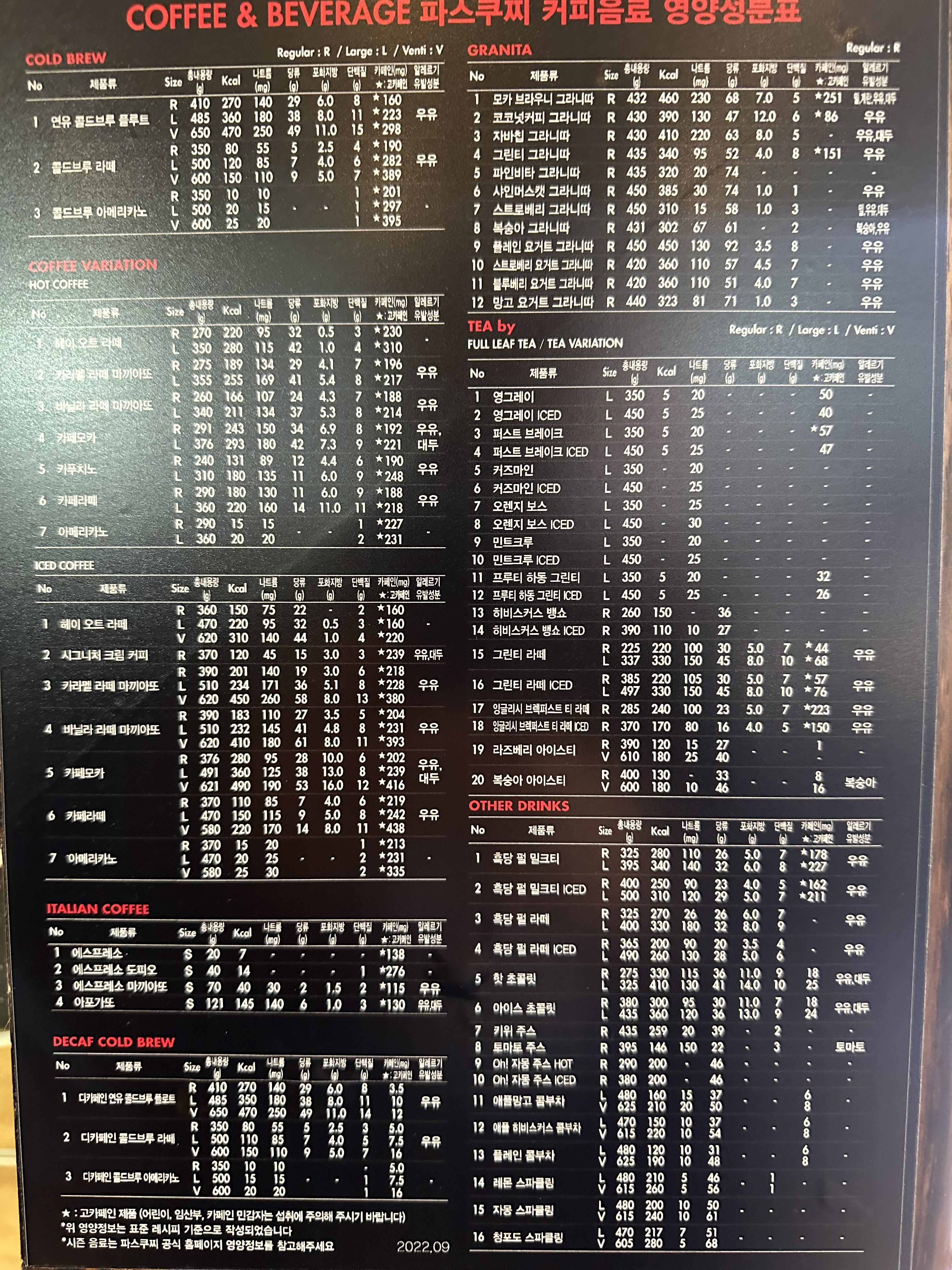 오늘은 파스쿠찌 음료의 칼로리 현황을 알아보려고 합니다.
