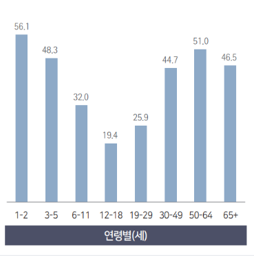 젊은 사람들은 좀 적게 먹을 것이다. 정답입니다. 그런데 30대부터는 많이 먹네요?