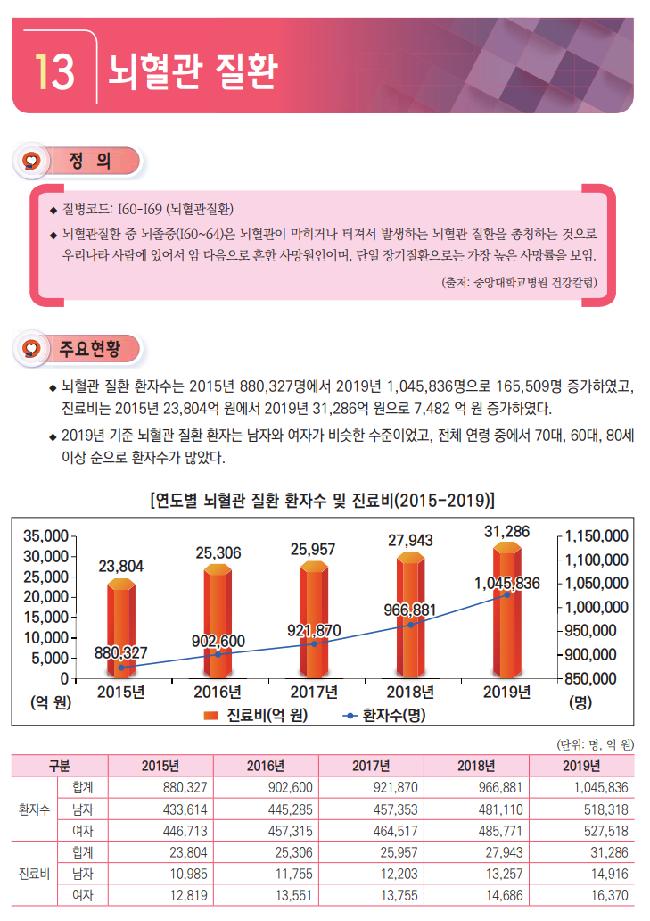 날이 갑자기 차가와 진다고 합니다. 오늘은 뇌혈관 질환 통계에 대해서 알아보겠습니다.