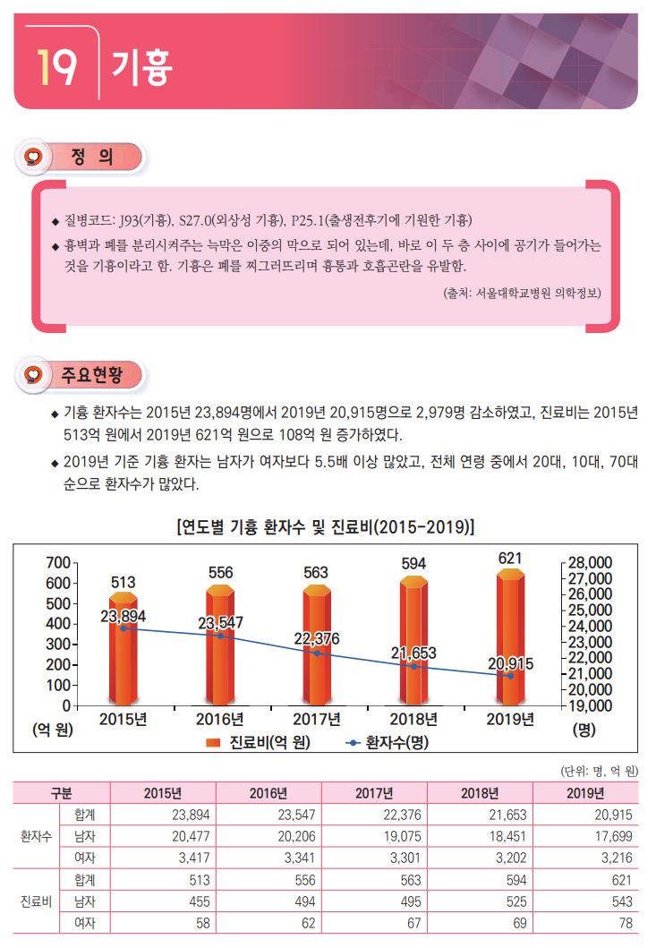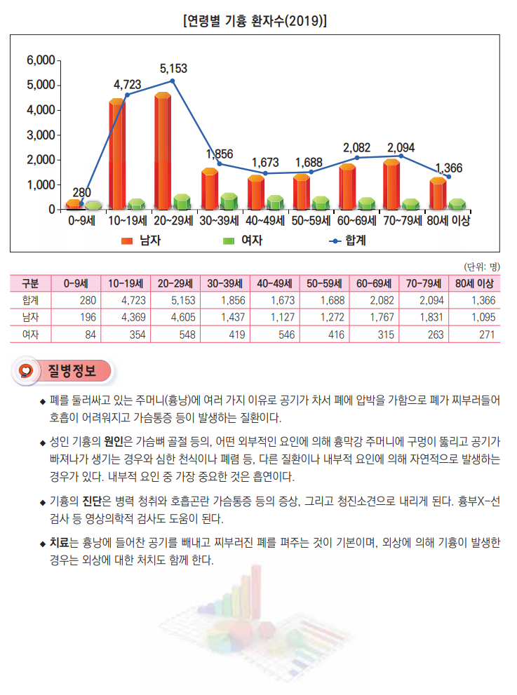 오늘은 기흉에 대한 통계를 알아보고자 합니다.