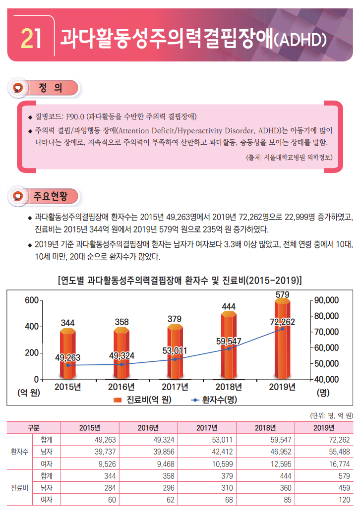 오늘은 ADHD (과다활동성주의력결핍장애)에 통계정보에 대하여 알아보려고 합니다.