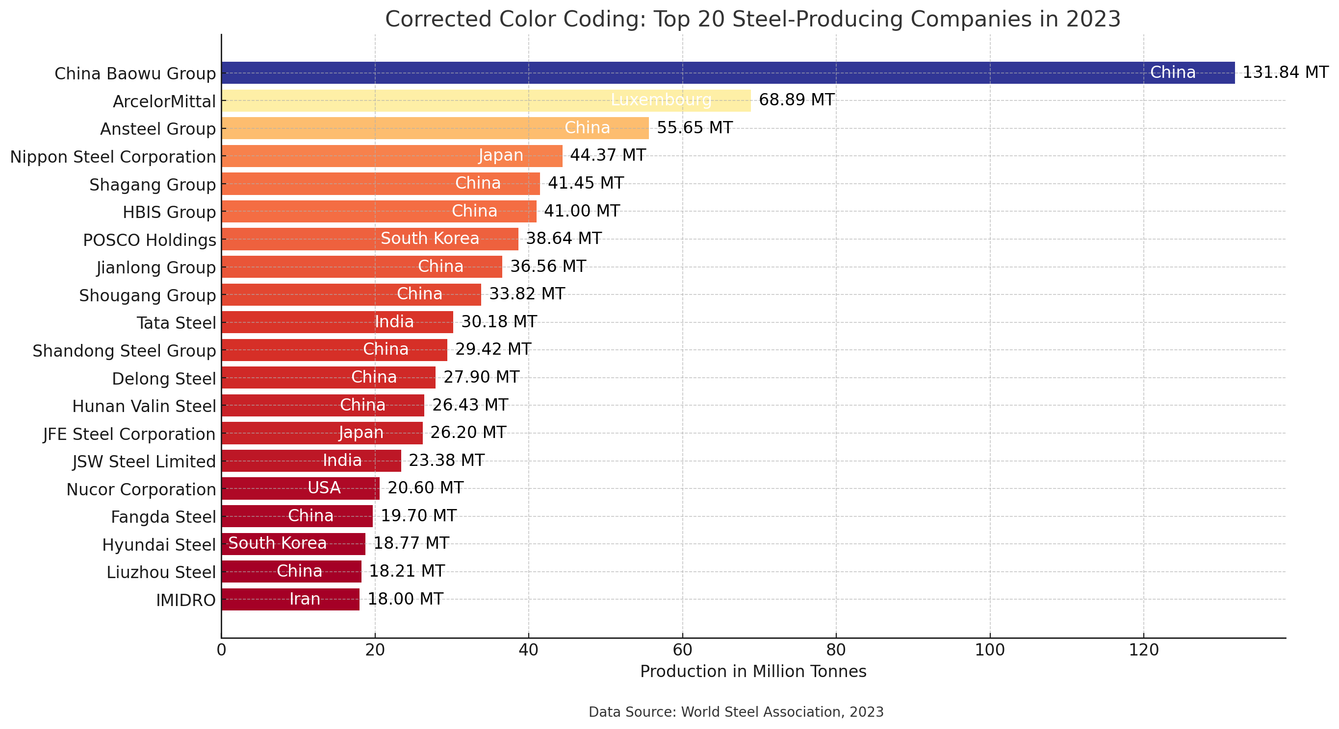 - 한국 조강(2024): 63.5 Mt (-4.8%)