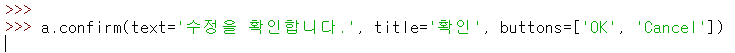 >>> confirm(text='', title='', buttons=['OK', 'Cancel'])