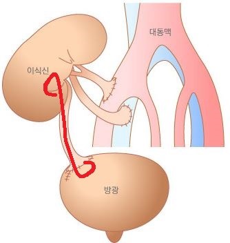 그림에 보는 것처럼 신장과 방광사이에 있는