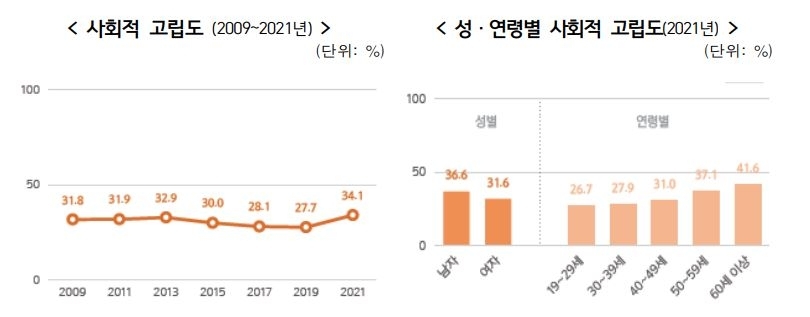 - 사회적 고립은 사망 위험을 약 30퍼센트 높인다.