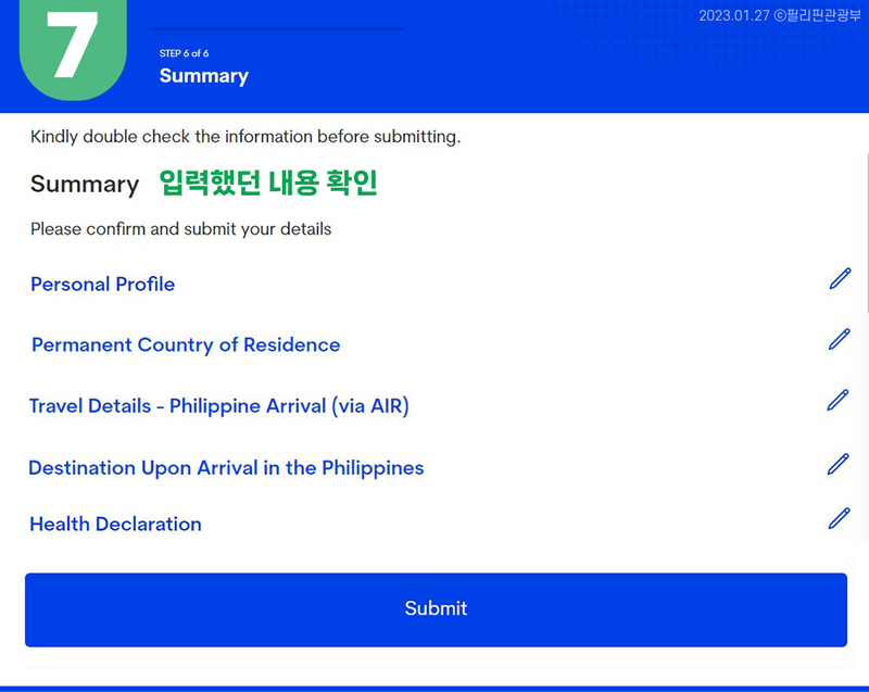 - ⑦ STEP 6 of 6. Summary: 입력 내용 확인
