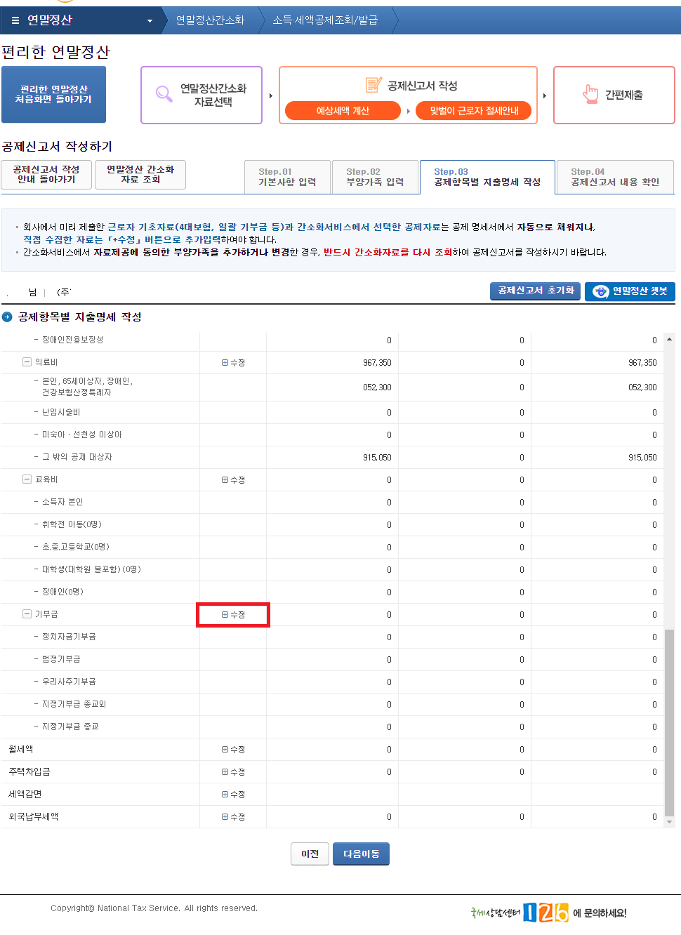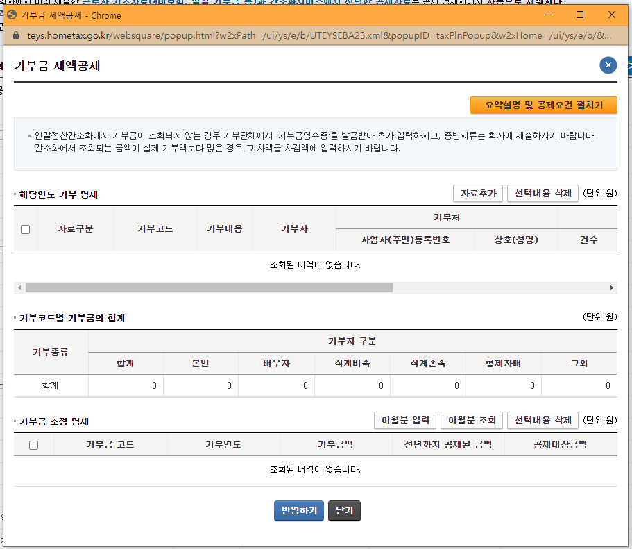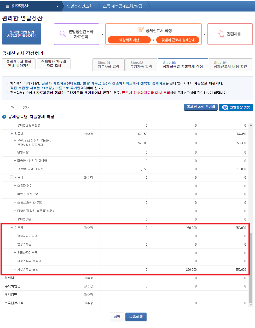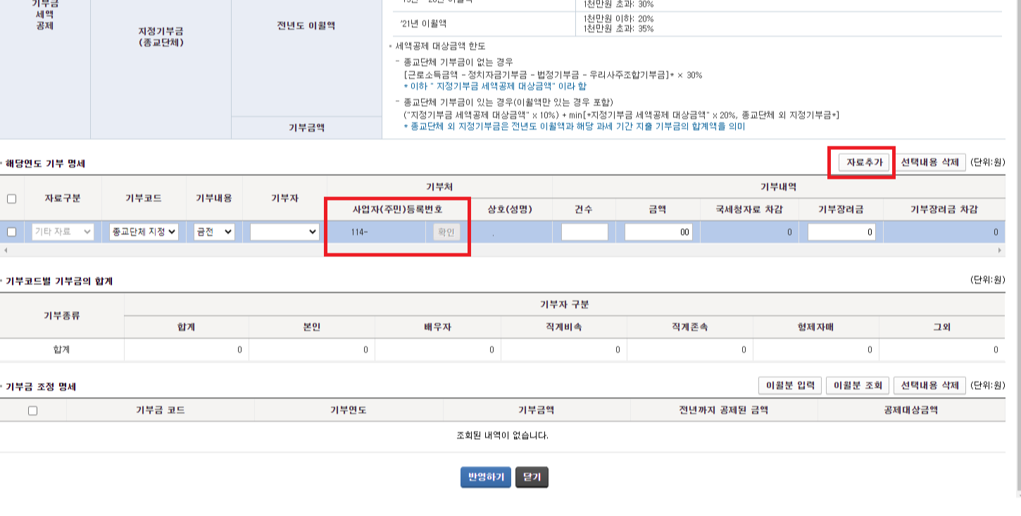 공제신고서 금액 추가하기 (기부금 금액 추가하기)