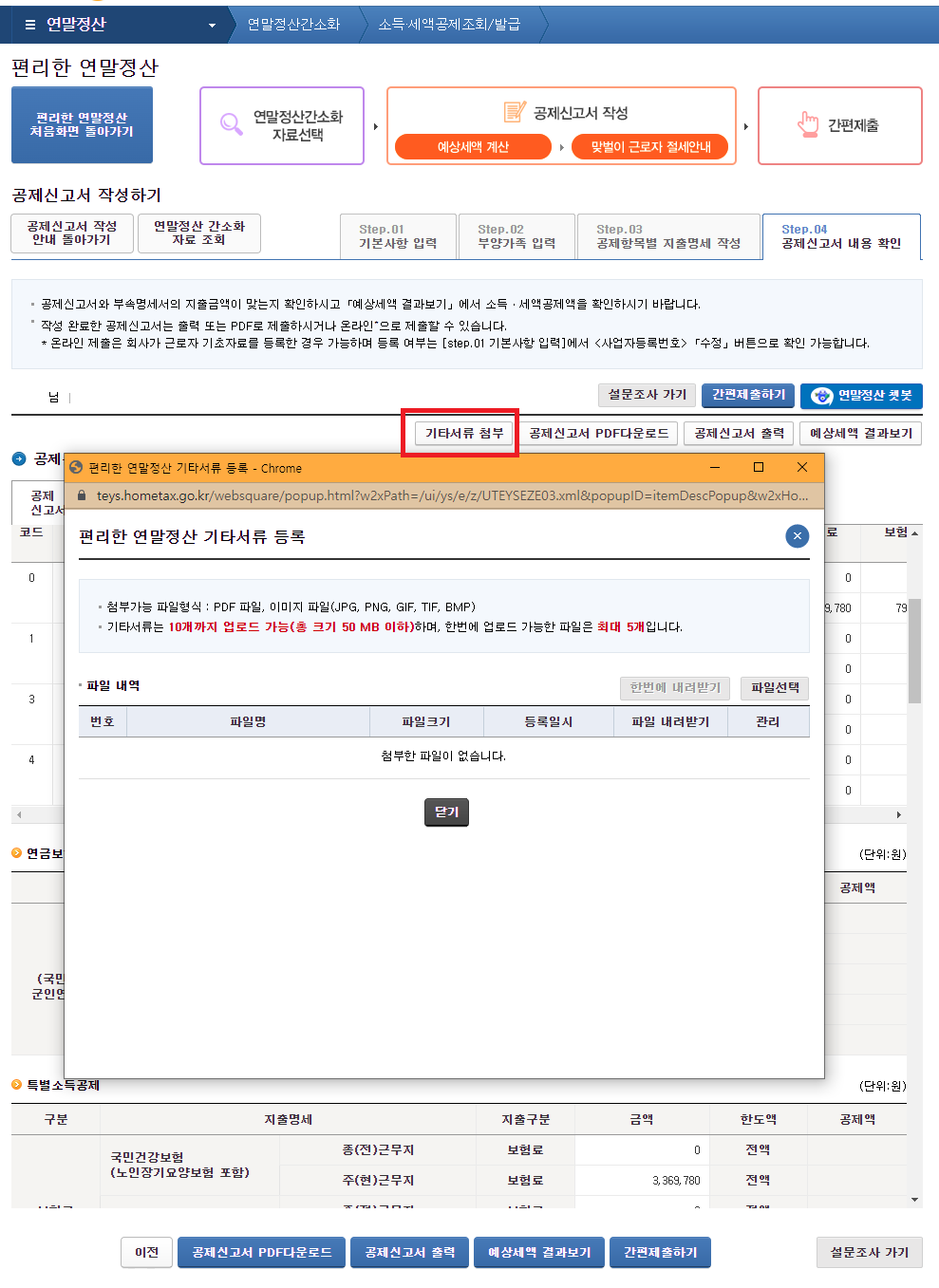 공제신고서 제출을 위한 기타서류 첨부
