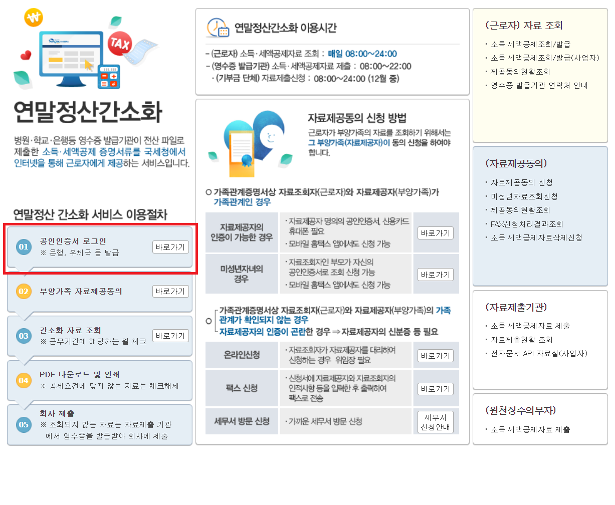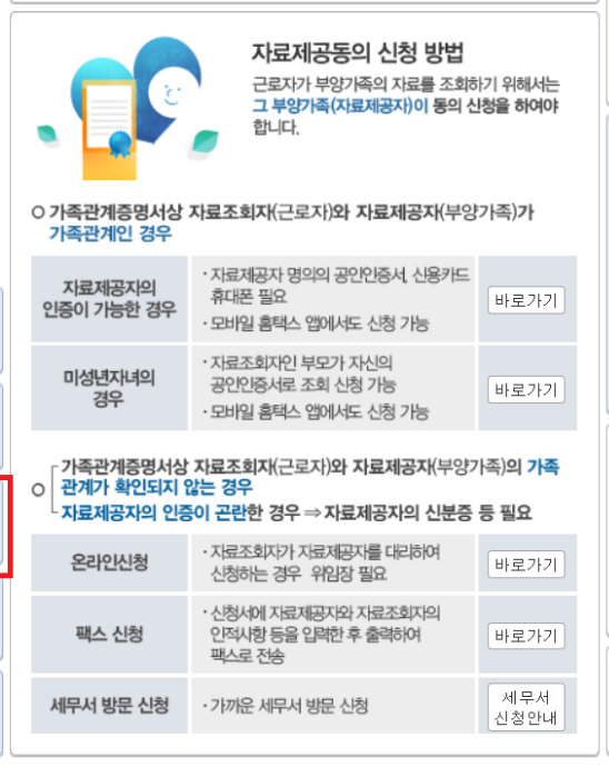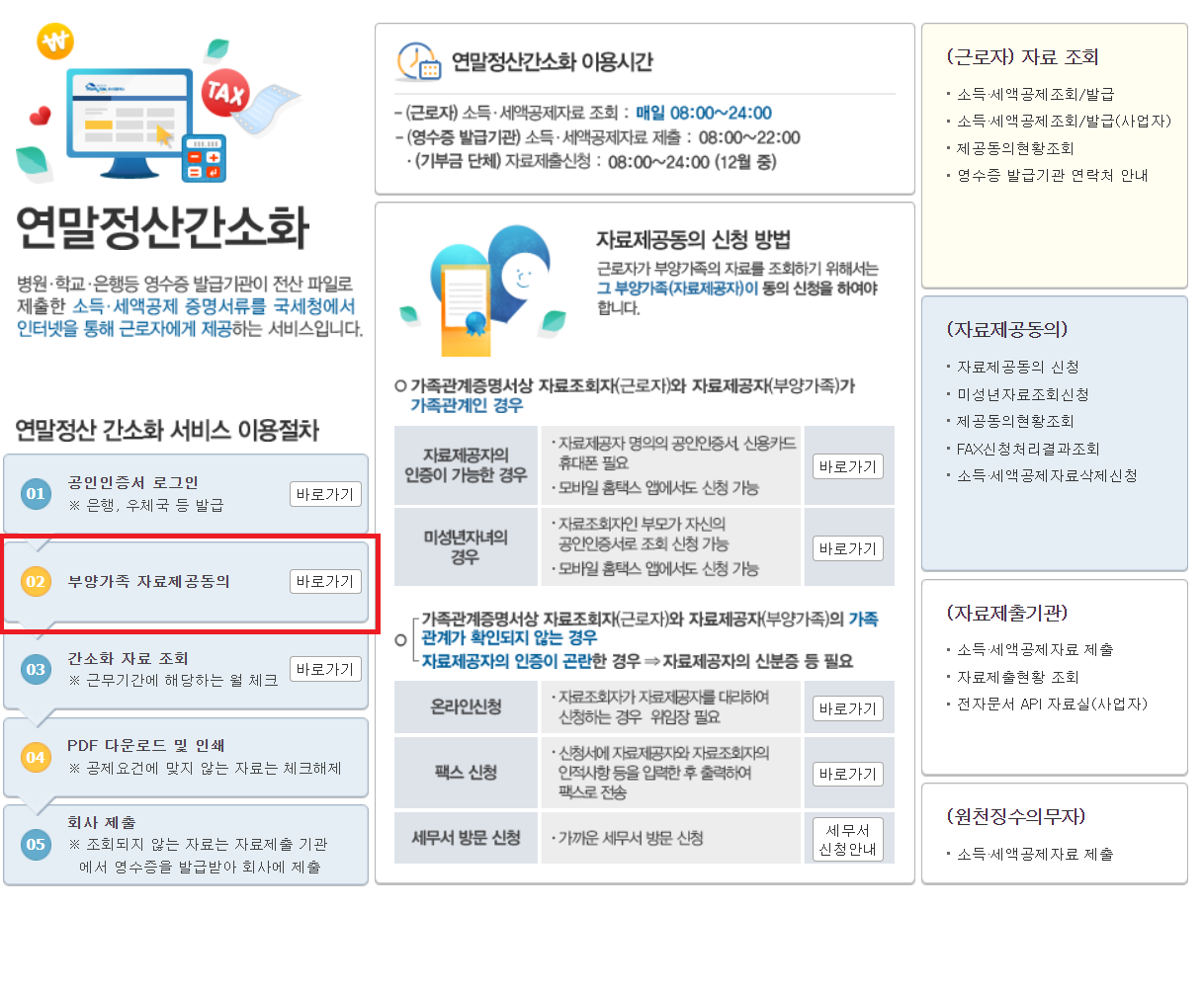 02. 부양가족 자료제공 동의 방법 및 순서