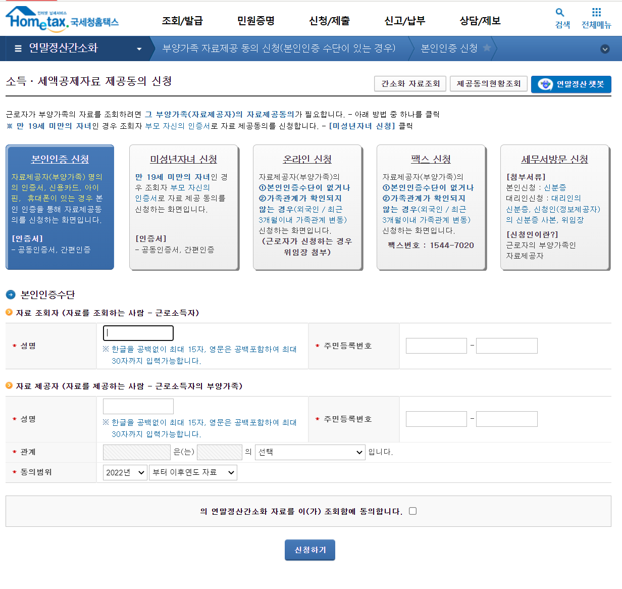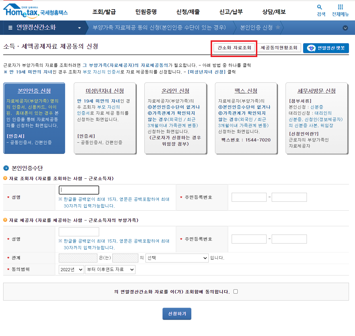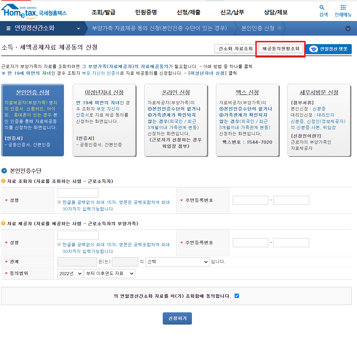 02. 부양가족 자료제공 동의 방법 및 순서