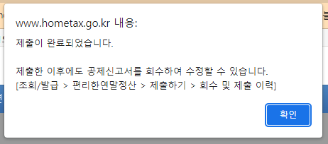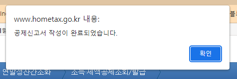다음이동 버튼을 누르면 이제 공제신고서 작성이 완료되었다고 안내가 나옵니다.