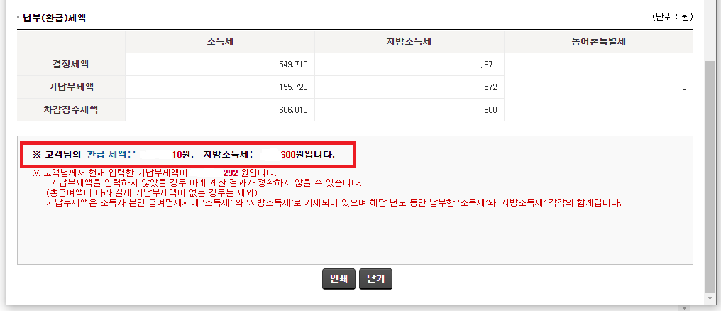 예상세액결과보기 버튼을 클릭해서 확인해보실 수 있습니다.