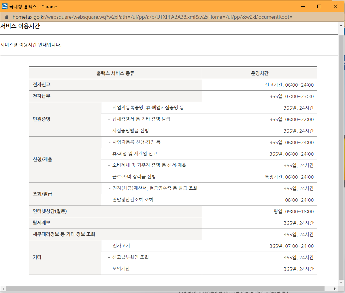연말정산이 제공되는 시간은 08:00-24:00까지 입니다.