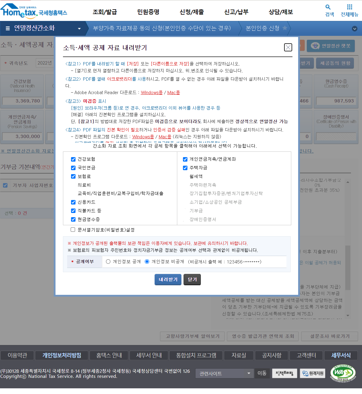 소득공제세액자료 내려받기