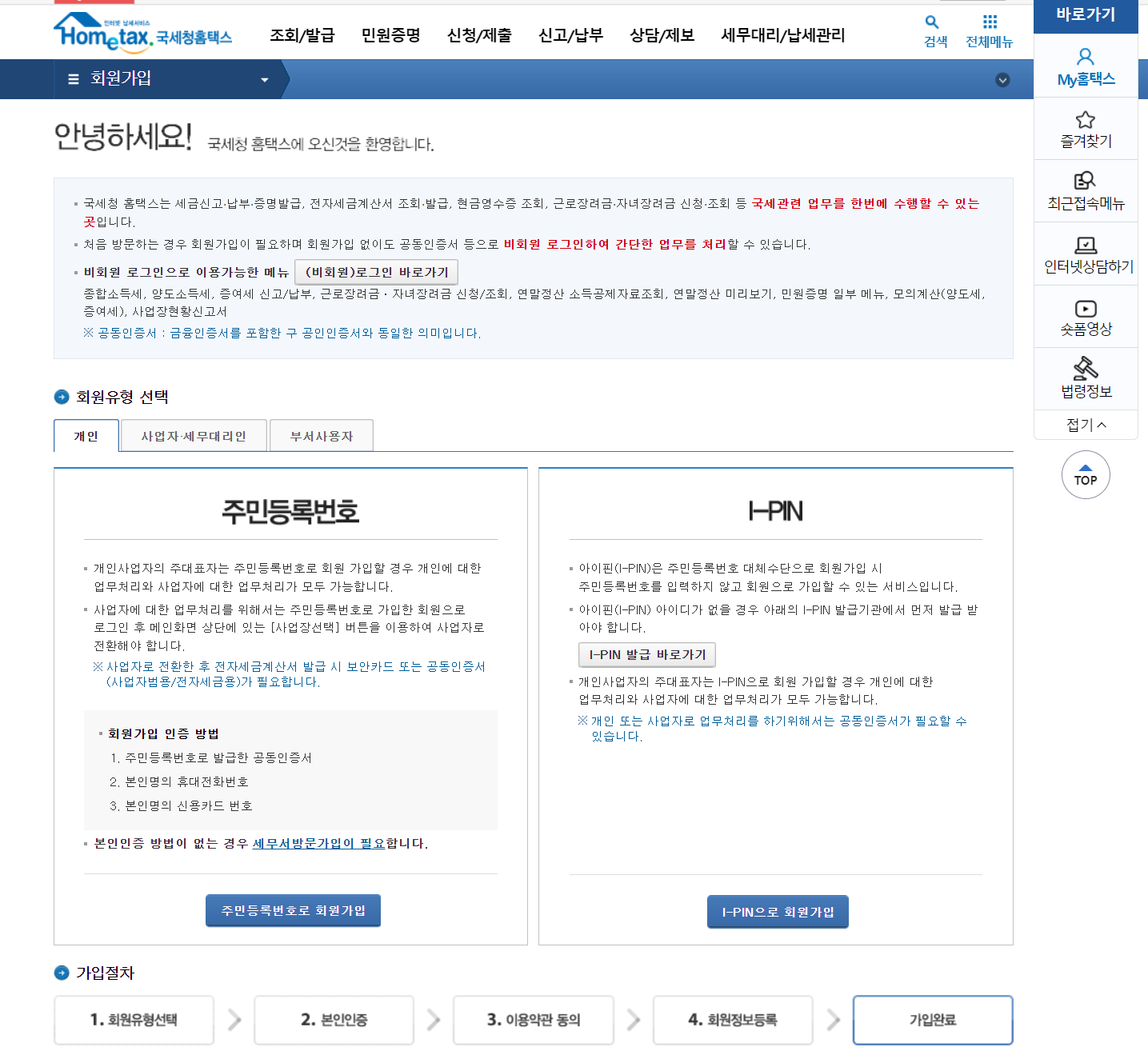 공인인증서가 없어도 걱정없이 회원가입하시면 되겠습니다.