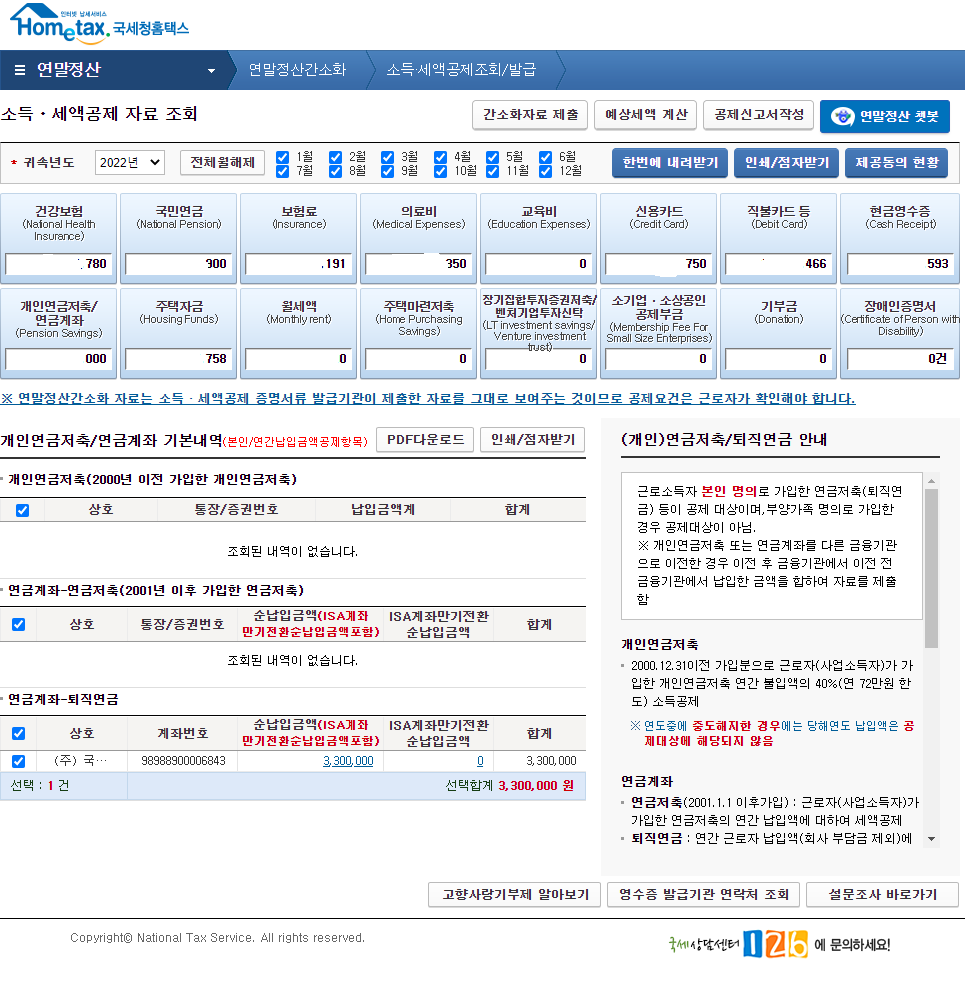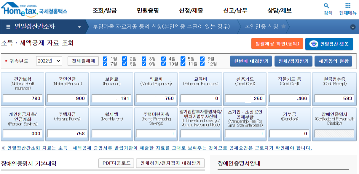 모든 동의절차가 마치면 이제 간소화 자료를 조회할수 있습니다.