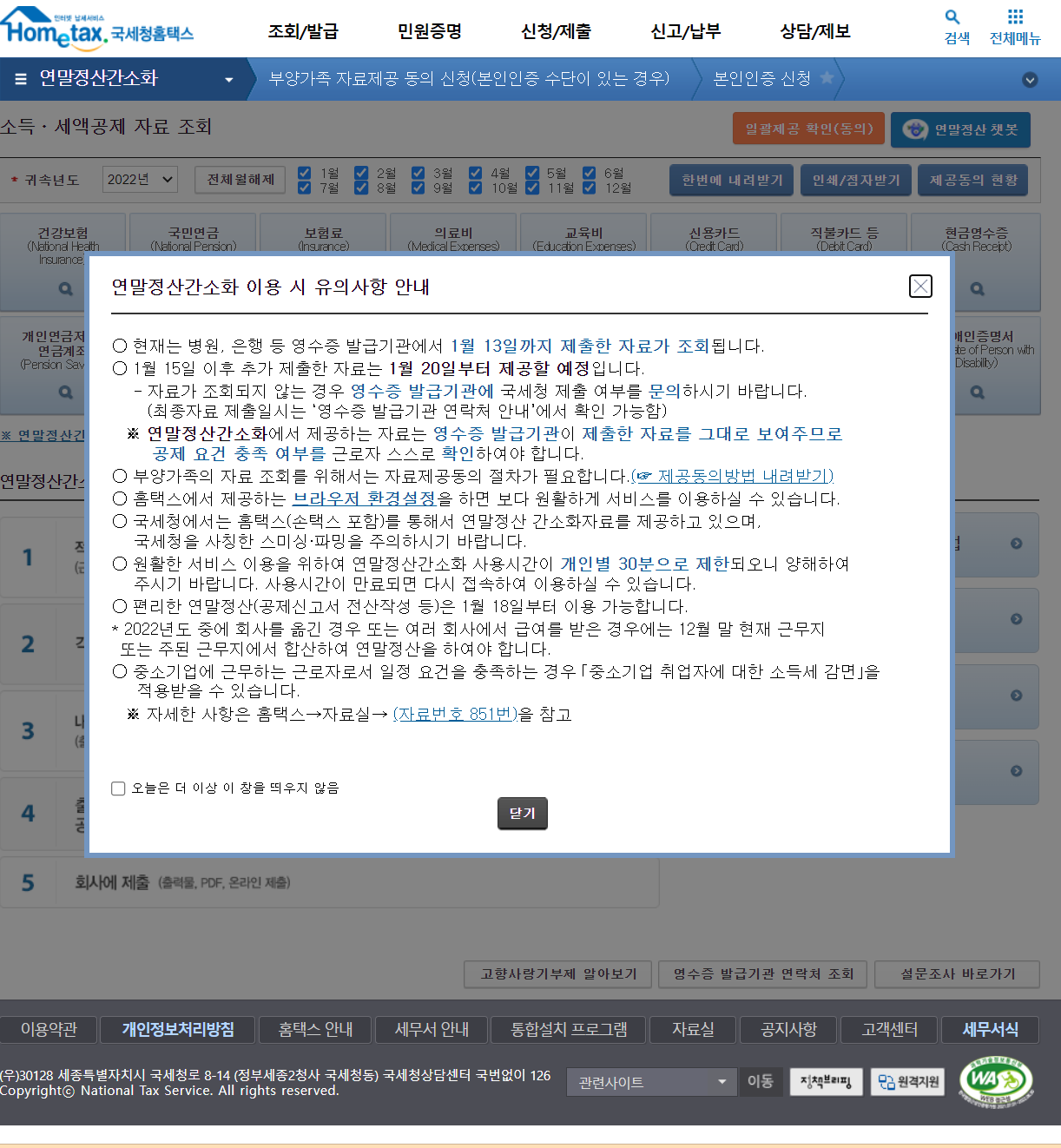 연말정산간소화 이용 시 유의사항 안내