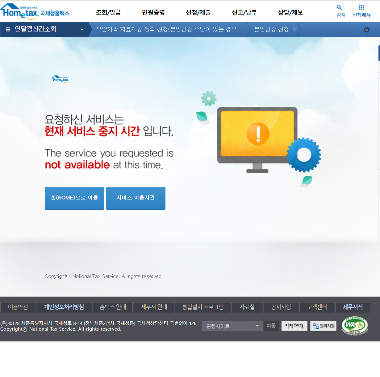 연말정산 사이트가 쉬는 시간