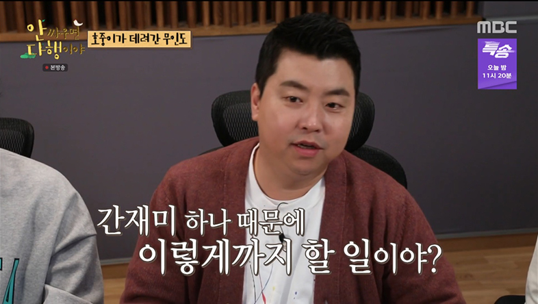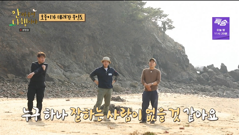 1월 23일 방송된 MBC ‘안싸우면 다행이야’에서는 김호중, 김광규, 허경환이 무인도로 향했다.