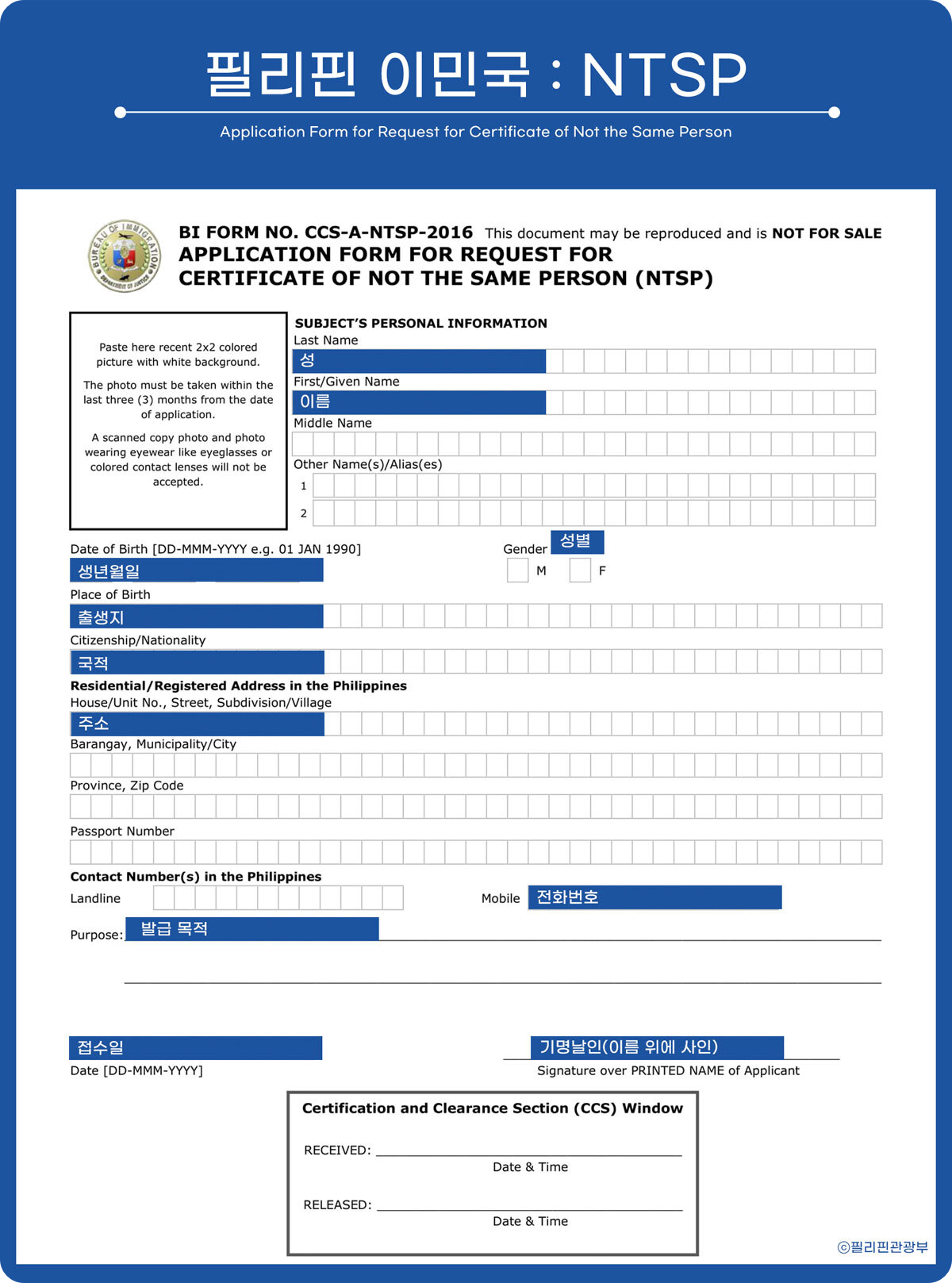 ※ 필리핀 이민국의 NTSP 관련 안내문 : Certification for Not the Same Person