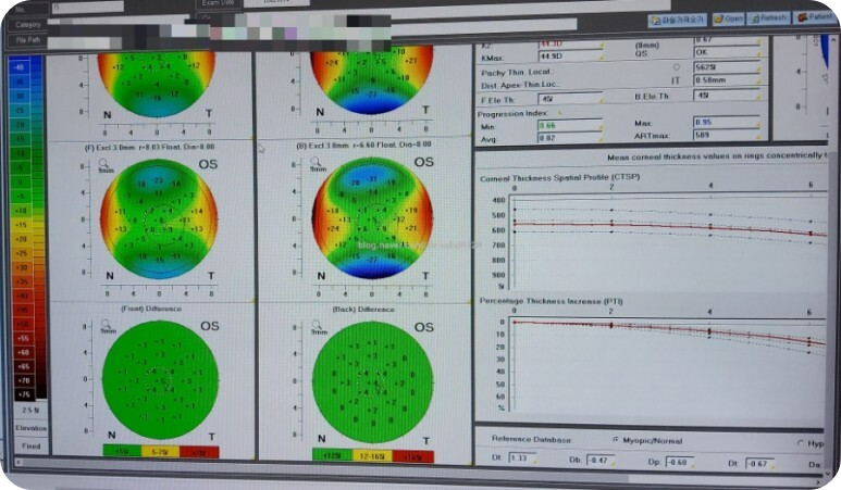 각막두께: 565um / 교정량: 91um / 잔여 각막 474um