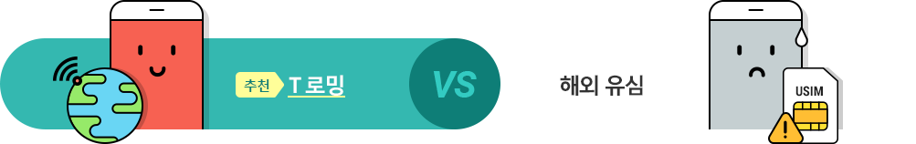 - 유심 교체할 필요 없이 해외 도착 시 자동 로밍