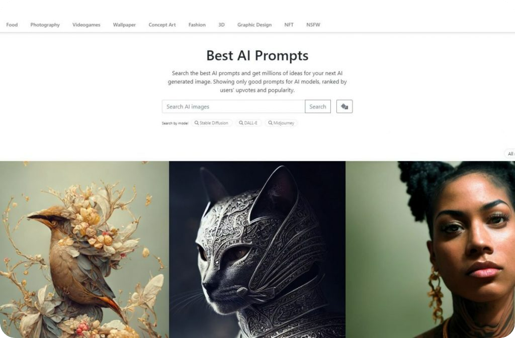 Prompthero 는 Stable Diffusion, DALL-E, Midjourney 등과 같은 AI 사진 생성 모델을 위한 가장 큰 프롬프트 라이브러리입니다. 지구상에서 가장 위대한 AI 프롬프트를 찾으십시오. DALL-E, Stable Diffusion 및 Midjourney 모델을 사용하여 인공 지능이 생성한 수백만 장의 사진을 발견하십시오.
