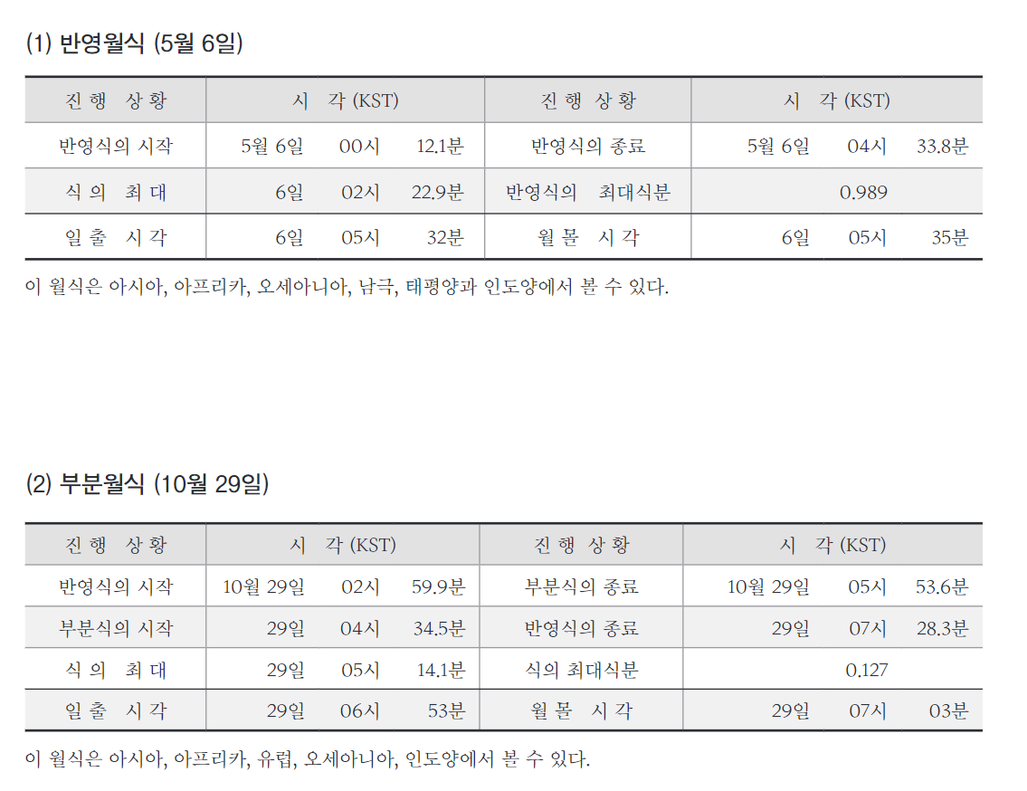 게2023년 월식은 5/6일과 10/29일에 있습니다.