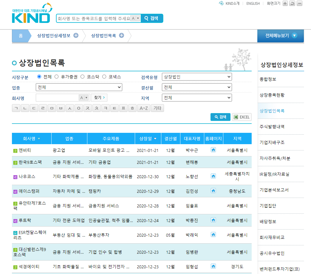 kind.krx.co.kr/corpgeneral/corpList.do?method=loadInitPage