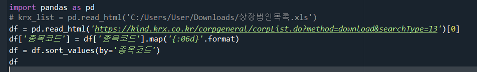 상장법인 목록을 python에서 가져오는 방법을 소개합니다.